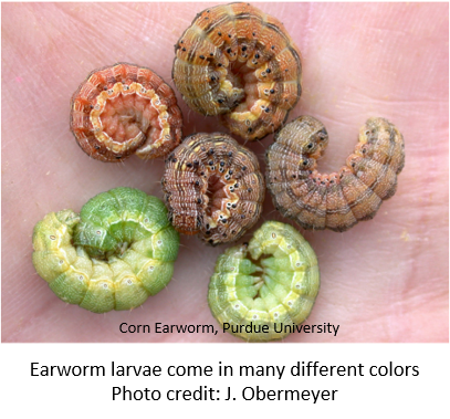 - Insecticide timing is crucial. Insecticides must be applied when eggs are present and before larvae migrate to the ear. Once larvae are sheltered by the husks, insecticides are ineffective.