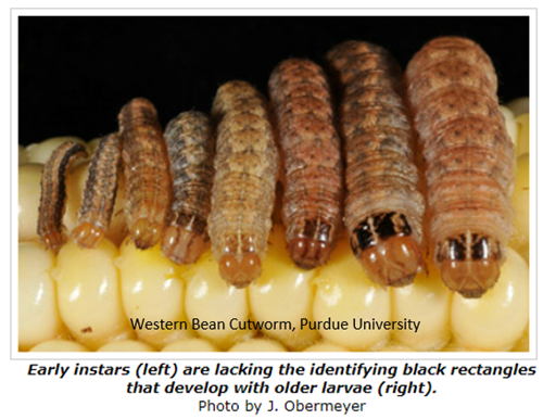 This time of the year, we typically find two species of larvae feeding on ears of corn: western bean cutworm (WBC) and corn earworm (CEW). It’s too late for any additional control measures in 2022, but the Dairyland Seed Agronomy Team has been responding to many questions about their presence in the field. Past 2022 information regarding WBC can be found in the June 29th edition of our newsletter. At the risk of repeating some information, here are some basics of these pests.