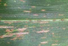 Heavy dews with leaf 6 to 18 hours of leaf wetness, and moderate temperatures between 65°F- 80°F favor infection. Prolonged periods of overcast skies that prevent leaf drying can also increase chances of infection and reinfection. Later planted corn and areas of corn on corn are most susceptible.