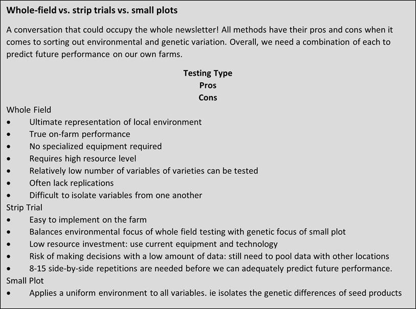 - Consistency of a product or practice should be a high priority, possibly more than pure yield. It’s nice to study trial winners but look for those which are consistently in the top third. This could be especially rare to find following the drought stress of 2023.