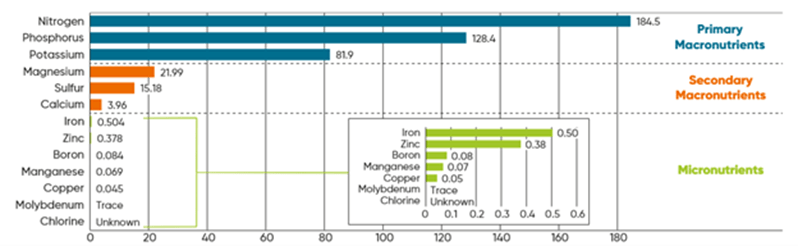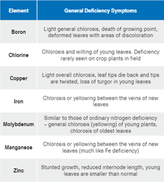 Micronutrients are essential for crop growth. Micro refers to the amount of these elements needed in comparison to macro nutrients which are Nitrogen, Phosphorus, and Potassium. This is noted well in the figure below.