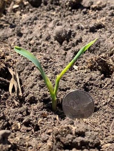 Wind and very high soil temperatures can also produce a variation of “Rootless Corn”. Rootless corn occurs when hot dry soil gets too warm (90°F or more) and/or has an open seed furrow, limiting the plant’s ability to put out its seminal root system. The seminal roots start to emerge at 60-70 Growing Degree Units (GDUs) and anchors the corn plant until V3 when the nodal root system takes over. If the seminal roots do not develop adequately to anchor the plant, as the corn plant puts out its first few leaves, the surface area of those leaves with the high winds, causes the plant to “sit and spin”. If the plant spins enough, it will girdle the plant, causing an area for disease to enter the seedling, or the above ground portion of the plant to spin off. In most instances, if the plant “spins” off, the plant will die from seedling disease.