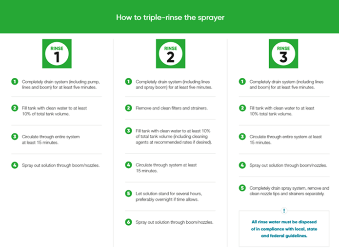 - Make sure the sprayer receives a thorough cleaning when switching crops or switching from pre-emergence applications to post-emergence applications. Frequent rinsing and cleaning will also help prevent residue accumulation.