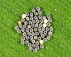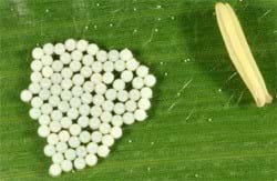 Egg mass next to a corn anther