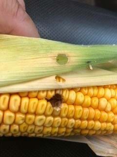 The larvae feed on corn pollen, anthers, and leaf tissue all while making their way to their main objective which is the corn ear. Once at the ear, the larvae begin feeding on the developing kernels. This feeding can occur until early October. When mature, the larvae fall to the ground and overwinter in the soil and emerge the following summer. Damage from the feeding can create a vector or entry point for molds and other ear diseases. Losses to feeding and disease have been found to cause up to 30-40 percent yield loss.